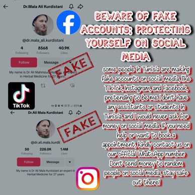 Hey guys, I've heard that some people in Tunisia are making fake accounts on social media, like TikTok, Instagram, and Facebook, pretending to be me. They're using my pictures and stuff to trick people into following them and giving them money. Just a heads up, I don't have any assistants or students in Tunisia, and I would never ask for money on social media. If you need help or want to book a appointment, kindly contact us on our official WhatsApp number : +9647509727671 | +919724810051. Don't send money to random people on social media, stay safe out there!