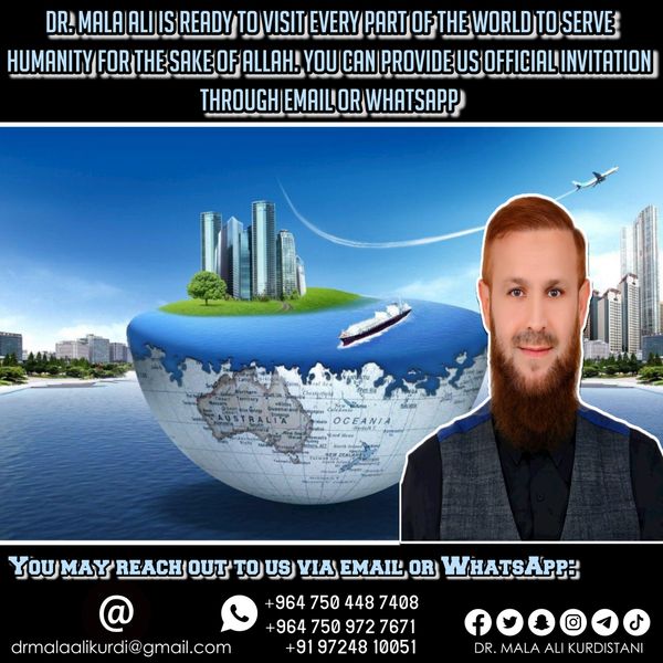 Dr. Mala Ali is ready to visit every part of the world to serve humanity for the sake of Allah. You can provide us official invitation through email or WhatsApp : +964 750 448 7408, +964 750 972 7671, +91 97248 10051. drmalaalikurdi@gmail.com